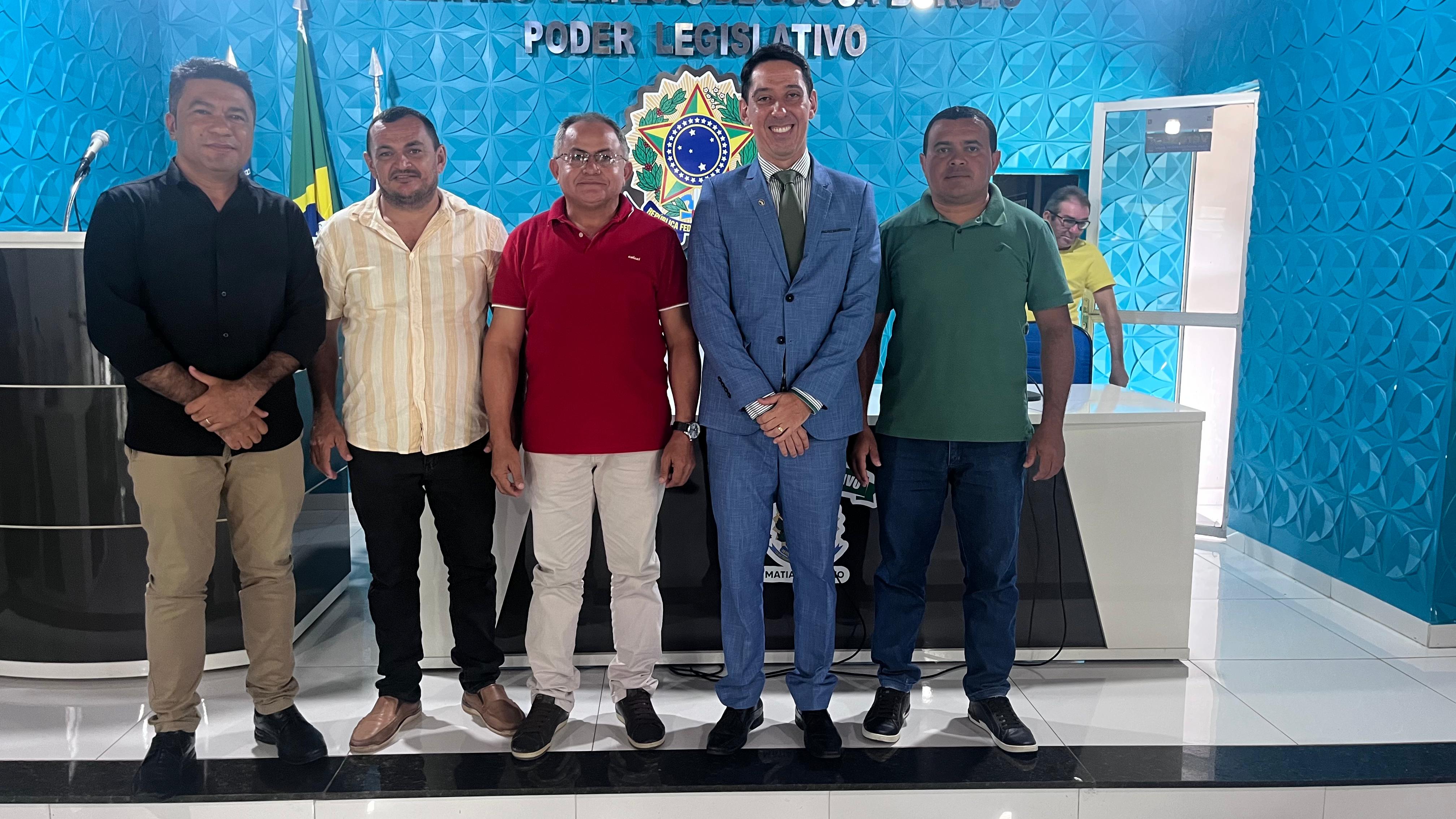 Acompanhando de Assessores de Magistrado de funcionários da Comarca, Dr. Alexssandro foi recebido cordialmente pelo vereador presidente Ozanias Vinute, pelo vereador vice-presidente Francisco José de Lima Filho e pelos vereadores Willame Deleon e José Wilson, além do procurador da Câmara de Vereadores Dr. Francisco Neto